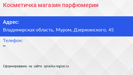Косметичка, магазин парфюмерии по адресу Владимирская область, Муром, Дзержинского, 45 в дальнейшем Организация, размещена в следующих категориях: