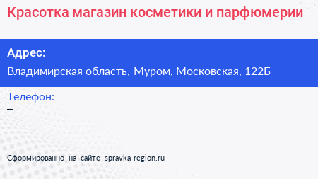 Красотка, магазин косметики и парфюмерии по адресу Владимирская область, Муром, Московская, 122Б в дальнейшем Организация, размещена в следующих категориях: