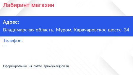 Лабиринт, магазин по адресу Владимирская область, Муром, Карачаровское шоссе, 34 в дальнейшем Организация, размещена в следующих категориях: