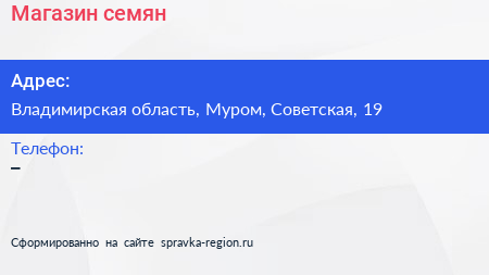 Магазин семян по адресу Владимирская область, Муром, Советская, 19 в дальнейшем Организация, размещена в следующих категориях: