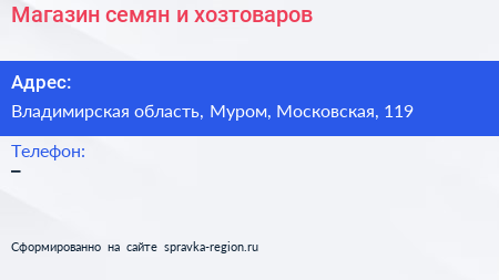 Магазин семян и хозтоваров по адресу Владимирская область, Муром, Московская, 119 в дальнейшем Организация, размещена в следующих категориях: