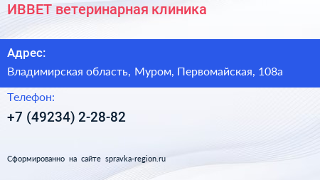 ИВВЕТ, ветеринарная клиника по адресу Владимирская область, Муром, Первомайская, 108а в дальнейшем Организация, размещена в следующих категориях:
