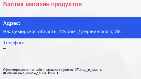 Бэстик, магазин продуктов по адресу Владимирская область, Муром, Дзержинского, 38 в дальнейшем Организация, размещена в следующих категориях: