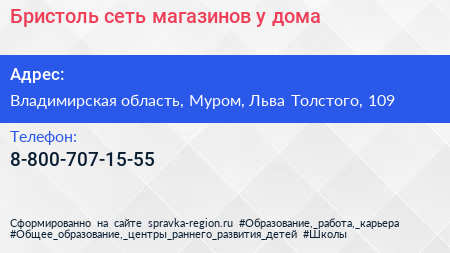 Бристоль, сеть магазинов у дома по адресу Владимирская область, Муром, Льва Толстого, 109 в дальнейшем Организация, размещена в следующих категориях: