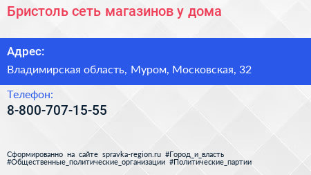 Бристоль, сеть магазинов у дома по адресу Владимирская область, Муром, Московская, 32 в дальнейшем Организация, размещена в следующих категориях: