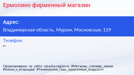 Ермолино, фирменный магазин по адресу Владимирская область, Муром, Московская, 119 в дальнейшем Организация, размещена в следующих категориях: