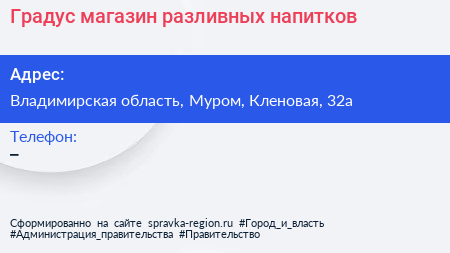 Градус, магазин разливных напитков по адресу Владимирская область, Муром, Кленовая, 32а в дальнейшем Организация, размещена в следующих категориях: