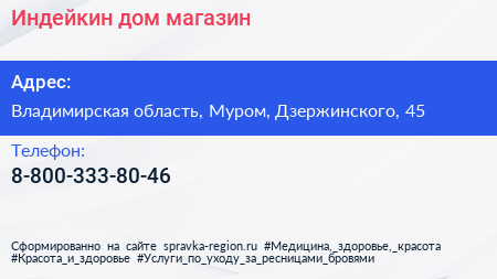 Индейкин дом, магазин по адресу Владимирская область, Муром, Дзержинского, 45 в дальнейшем Организация, размещена в следующих категориях: