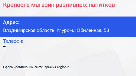 Крепость, магазин разливных напитков по адресу Владимирская область, Муром, Юбилейная, 58 в дальнейшем Организация, размещена в следующих категориях: