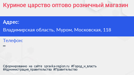 Куриное царство, оптово-розничный магазин по адресу Владимирская область, Муром, Московская, 118 в дальнейшем Организация, размещена в следующих категориях: