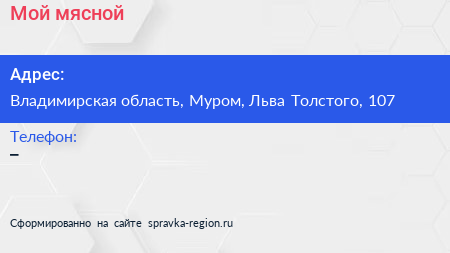 Мой мясной по адресу Владимирская область, Муром, Льва Толстого, 107 в дальнейшем Организация, размещена в следующих категориях: