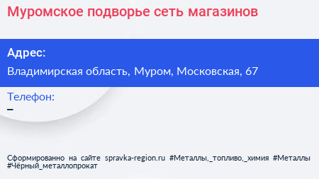 Муромское подворье, сеть магазинов по адресу Владимирская область, Муром, Московская, 67 в дальнейшем Организация, размещена в следующих категориях: