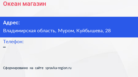 Океан, магазин по адресу Владимирская область, Муром, Куйбышева, 28 в дальнейшем Организация, размещена в следующих категориях: