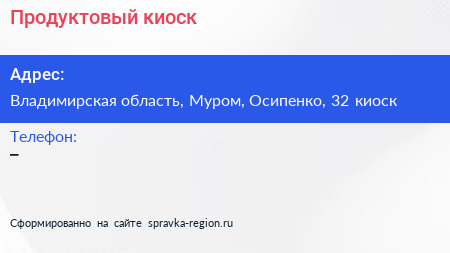 Продуктовый киоск по адресу Владимирская область, Муром, Осипенко, 32 киоск в дальнейшем Организация, размещена в следующих категориях: