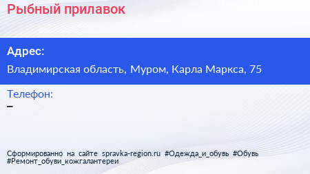 Рыбный прилавок по адресу Владимирская область, Муром, Карла Маркса, 75 в дальнейшем Организация, размещена в следующих категориях: