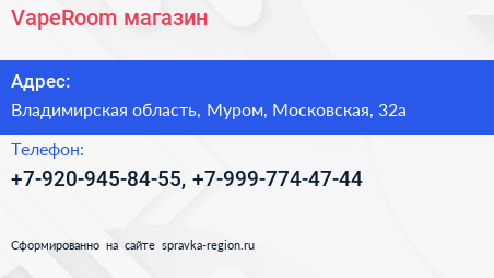 VapeRoom, магазин по адресу Владимирская область, Муром, Московская, 32а в дальнейшем Организация, размещена в следующих категориях: