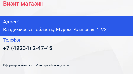 Визит, магазин по адресу Владимирская область, Муром, Кленовая, 12/3 в дальнейшем Организация, размещена в следующих категориях: