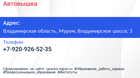 Автовышка по адресу Владимирская область, Муром, Владимирское шоссе, 3 в дальнейшем Организация, размещена в следующих категориях: