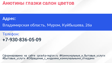 Анютины глазки, салон цветов по адресу Владимирская область, Муром, Куйбышева, 26а в дальнейшем Организация, размещена в следующих категориях: