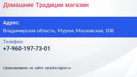 Домашние Традиции, магазин по адресу Владимирская область, Муром, Московская, 108 в дальнейшем Организация, размещена в следующих категориях: