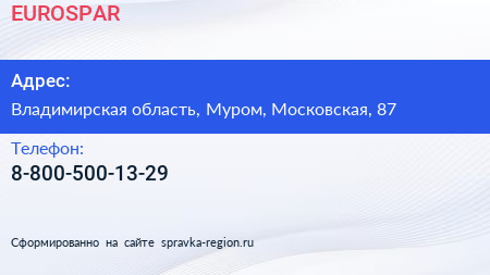 EUROSPAR по адресу Владимирская область, Муром, Московская, 87 в дальнейшем Организация, размещена в следующих категориях: