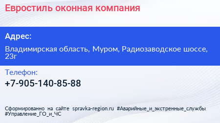 Евростиль, оконная компания по адресу Владимирская область, Муром, Радиозаводское шоссе, 23г в дальнейшем Организация, размещена в следующих категориях: