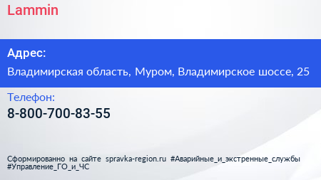Lammin по адресу Владимирская область, Муром, Владимирское шоссе, 25 в дальнейшем Организация, размещена в следующих категориях: