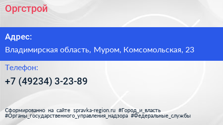Оргстрой по адресу Владимирская область, Муром, Комсомольская, 23 в дальнейшем Организация, размещена в следующих категориях: