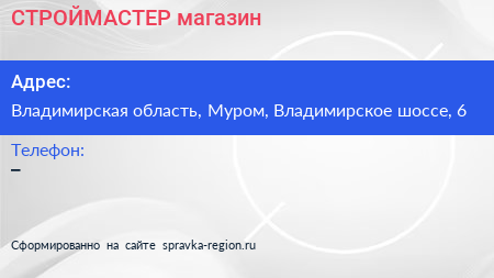 СТРОЙМАСТЕР, магазин по адресу Владимирская область, Муром, Владимирское шоссе, 6 в дальнейшем Организация, размещена в следующих категориях: