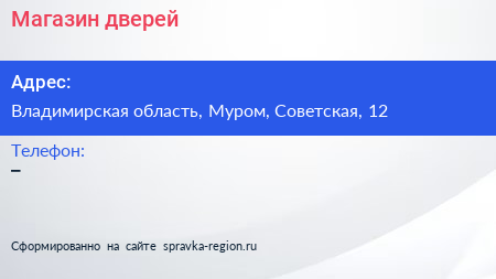 Магазин дверей по адресу Владимирская область, Муром, Советская, 12 в дальнейшем Организация, размещена в следующих категориях: