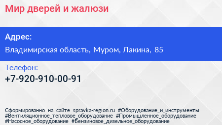Мир дверей и жалюзи по адресу Владимирская область, Муром, Лакина, 85 в дальнейшем Организация, размещена в следующих категориях:
