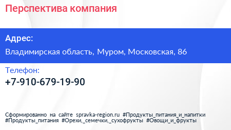 Перспектива, компания по адресу Владимирская область, Муром, Московская, 86 в дальнейшем Организация, размещена в следующих категориях: