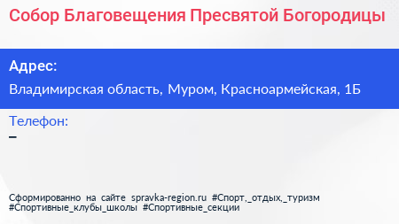 Собор Благовещения Пресвятой Богородицы по адресу Владимирская область, Муром, Красноармейская, 1Б в дальнейшем Организация, размещена в следующих категориях:
