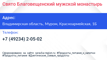 Свято-Благовещенский мужской монастырь по адресу Владимирская область, Муром, Красноармейская, 1Б в дальнейшем Организация, размещена в следующих категориях: