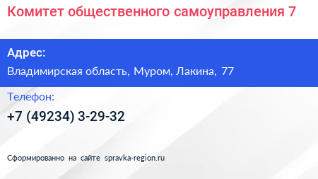 Комитет общественного самоуправления №7 по адресу Владимирская область, Муром, Лакина, 77 в дальнейшем Организация, размещена в следующих категориях: