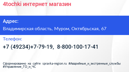 4tochki, интернет-магазин по адресу Владимирская область, Муром, Октябрьская, 67 в дальнейшем Организация, размещена в следующих категориях: