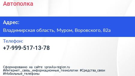 Автополка по адресу Владимирская область, Муром, Воровского, 82а в дальнейшем Организация, размещена в следующих категориях: