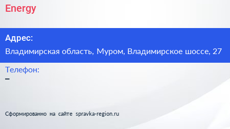 Energy по адресу Владимирская область, Муром, Владимирское шоссе, 27 в дальнейшем Организация, размещена в следующих категориях: