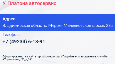 У Платона, автосервис по адресу Владимирская область, Муром, Меленковское шоссе, 23а в дальнейшем Организация, размещена в следующих категориях: