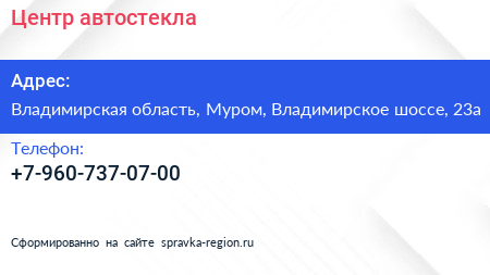 Центр автостекла по адресу Владимирская область, Муром, Владимирское шоссе, 23а в дальнейшем Организация, размещена в следующих категориях: