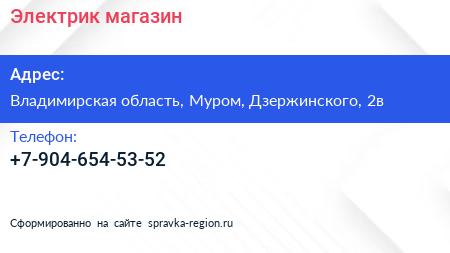 Электрик, магазин по адресу Владимирская область, Муром, Дзержинского, 2в в дальнейшем Организация, размещена в следующих категориях: