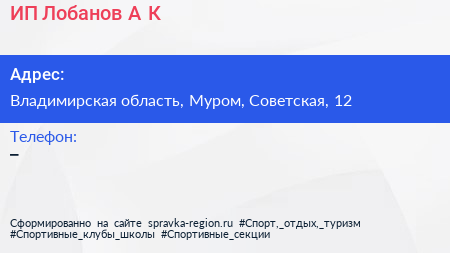 ИП Лобанов А.К. по адресу Владимирская область, Муром, Советская, 12 в дальнейшем Организация, размещена в следующих категориях: