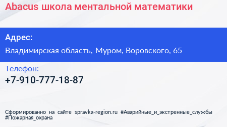 Abacus, школа ментальной математики по адресу Владимирская область, Муром, Воровского, 65 в дальнейшем Организация, размещена в следующих категориях: