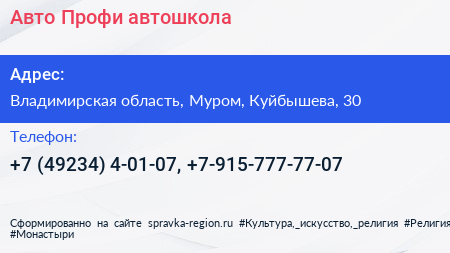 Авто-Профи, автошкола по адресу Владимирская область, Муром, Куйбышева, 30 в дальнейшем Организация, размещена в следующих категориях: