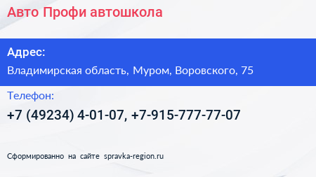 Авто-Профи, автошкола по адресу Владимирская область, Муром, Воровского, 75 в дальнейшем Организация, размещена в следующих категориях:
