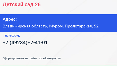 Детский сад №26 по адресу Владимирская область, Муром, Пролетарская, 52 в дальнейшем Организация, размещена в следующих категориях: