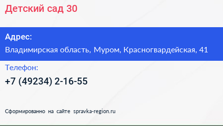 Детский сад №30 по адресу Владимирская область, Муром, Красногвардейская, 41 в дальнейшем Организация, размещена в следующих категориях: