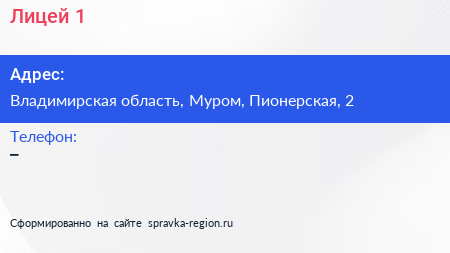 Лицей №1 по адресу Владимирская область, Муром, Пионерская, 2 в дальнейшем Организация, размещена в следующих категориях: