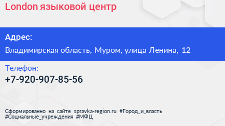 London, языковой центр по адресу Владимирская область, Муром, улица Ленина, 12 в дальнейшем Организация, размещена в следующих категориях: