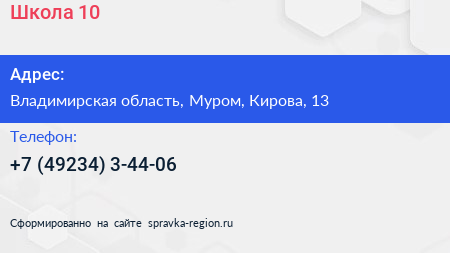 Школа №10 по адресу Владимирская область, Муром, Кирова, 13 в дальнейшем Организация, размещена в следующих категориях: